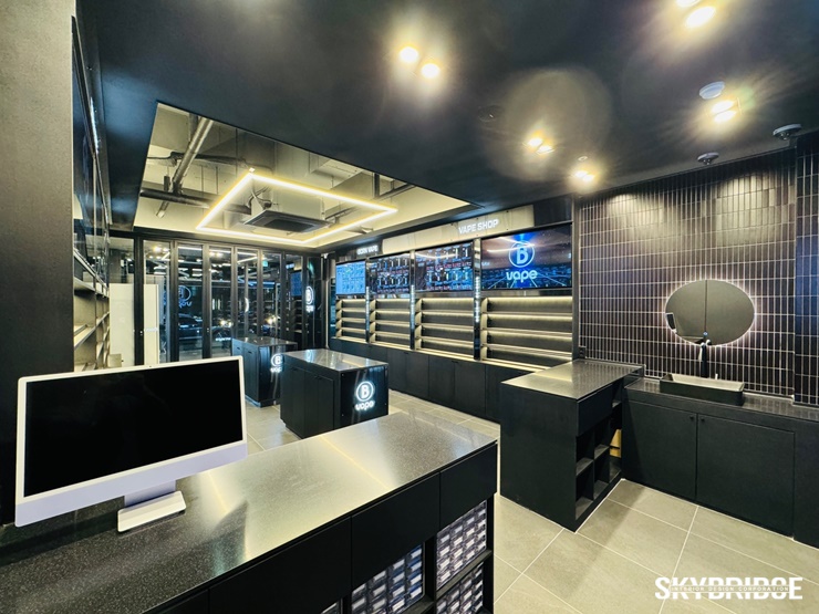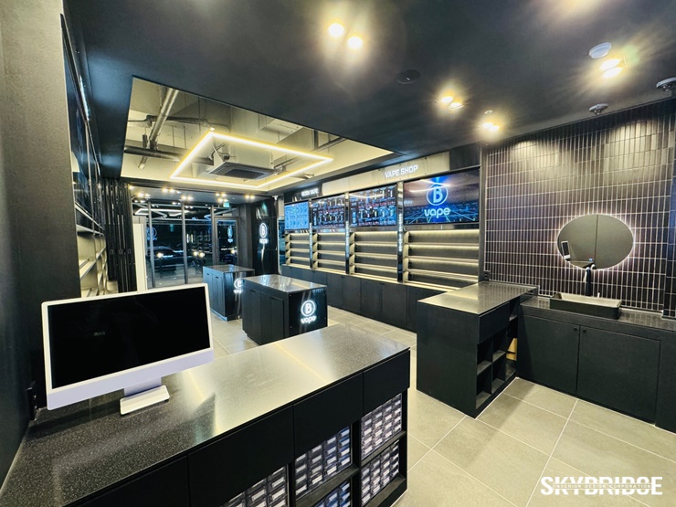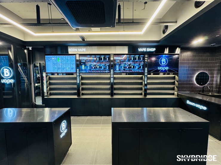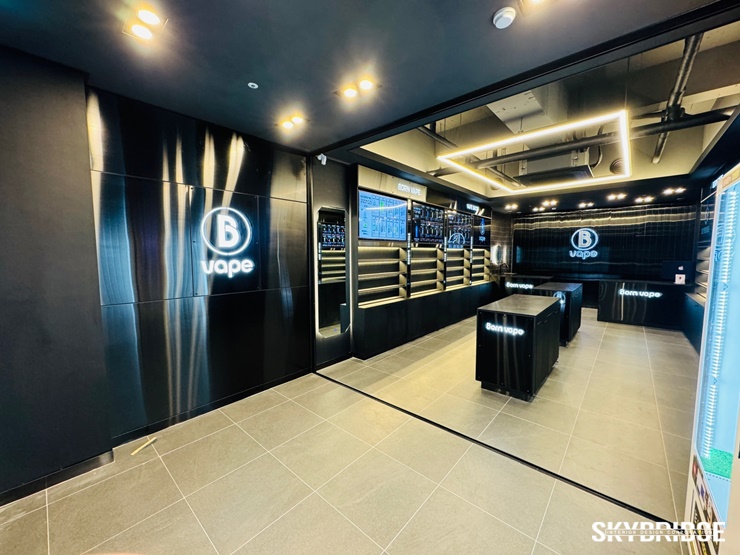 고급스러운 블랙색상의 인테리어 컨셉으로 시공된 전자담배 인테리어 본베이프 입니다